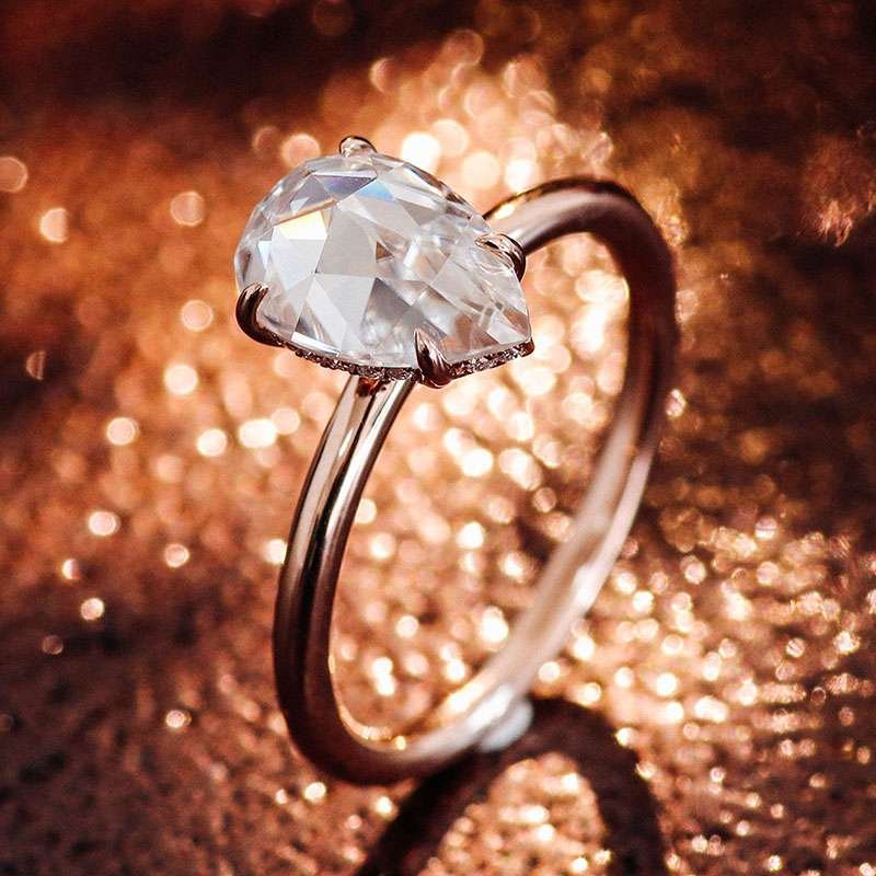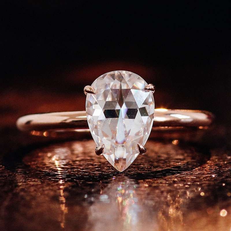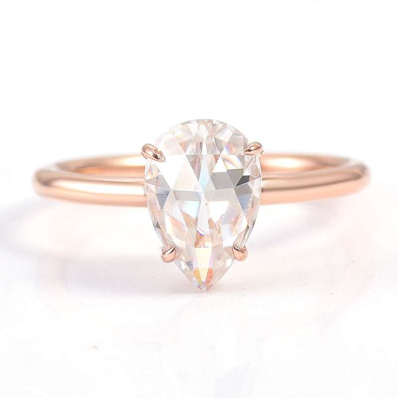 Romantic Rose Gold Treasure:Enchanting Pear Cut Moissanite Ring