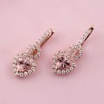 Rose Gold Heart-Shaped Pink Gemstone Earrings with Halo