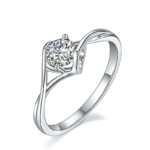 Round brilliant set 4 claw on a twist moissanite solitaire ring