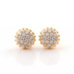 This gorgeous stud earrings feature a moissanite cluster design with round brilliant cut moissanite by pave disc.Unique style & intricate workmanship make these earrings a true masterpiece.