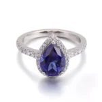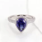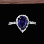 Royal Blue Pavé Ring | Pear Lab Gemstone & Moissanite Band