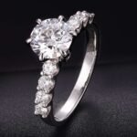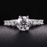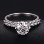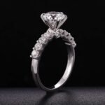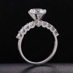Elevate your love story with this sensational round cut Lab Diamond Pave Ring. The magnificent round cut lab diamond at the center steals the show with its remarkable brilliance, while a row of smaller lab diamonds along the band adds extra sparkle. Crafted from premium 18K white gold, the ring exudes a sense of luxury and sophistication. It’s a perfect blend of modern style and classic charm, making it an ideal choice for those who want to make a statement of love and elegance.