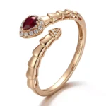 Serpent’s Embrace Ring | Pear-Cut Ruby & Lab Diamond 18K Yellow Gold Coiled Serpent Ring