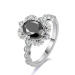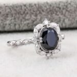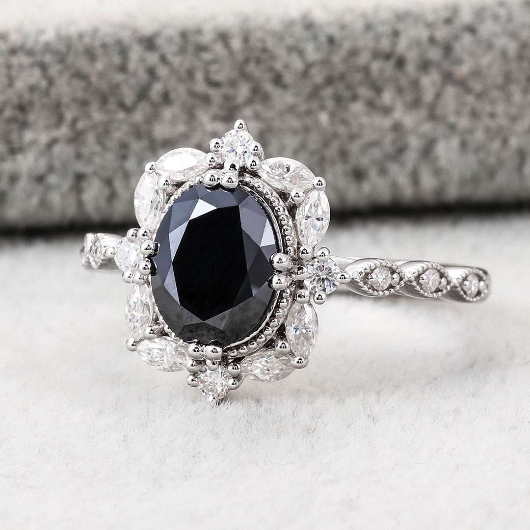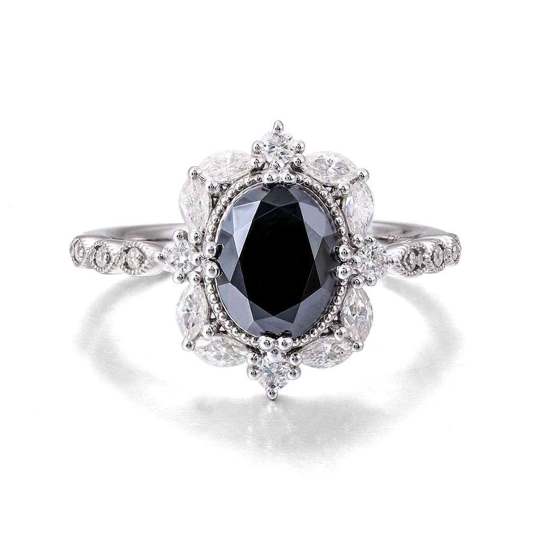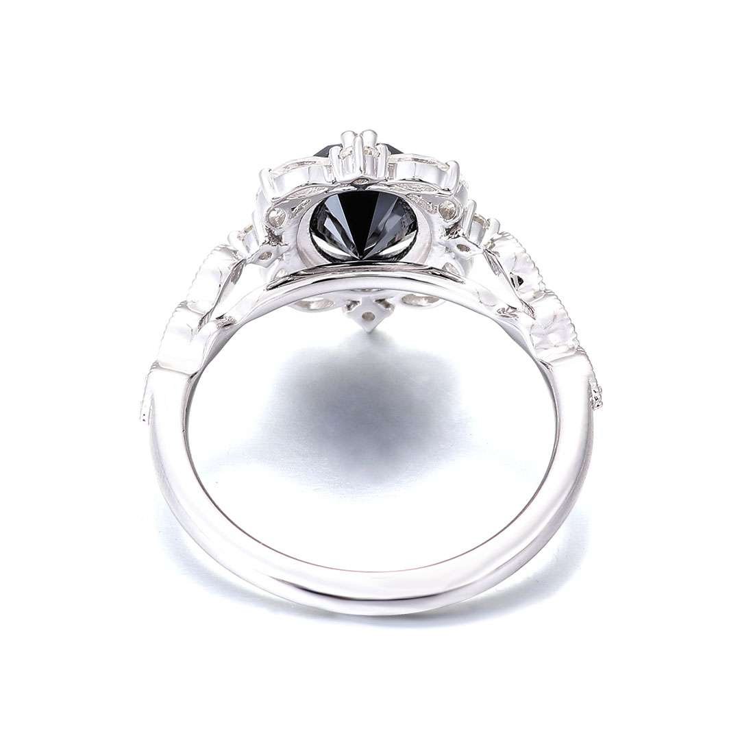 Striking 2.5CT Oval Cut White Gold Black Moissanite Halo Ring