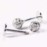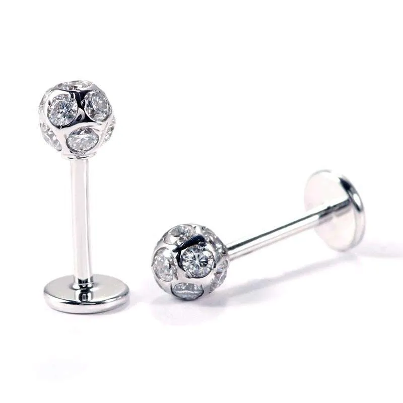 These Moissanite Stud Earrings feature high-quality moissanite stones with VVS clarity, set in sleek white gold. The moissanite stones are arranged in a captivating spherical design, adding a touch of modernity and elegance. The white gold metal enhances the brilliance of the stones, creating a dazzling effect. Perfect for those who love to make a bold fashion statement, these earrings are suitable for both casual and formal occasions, making you stand out with their exquisite craftsmanship and contemporary style.