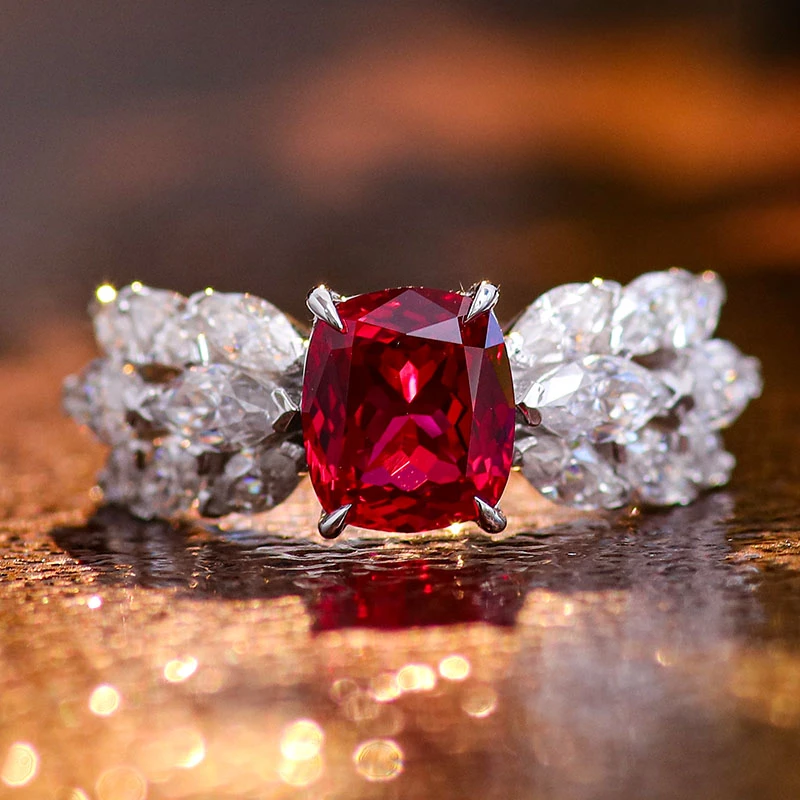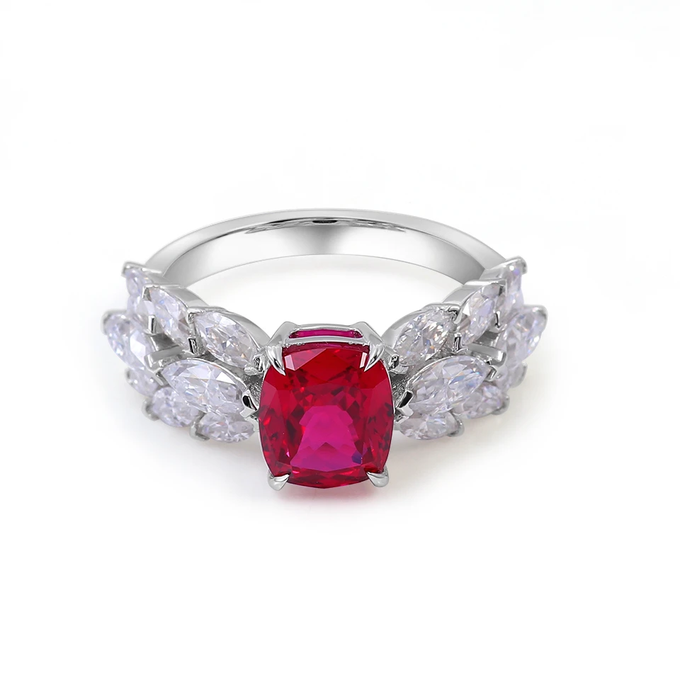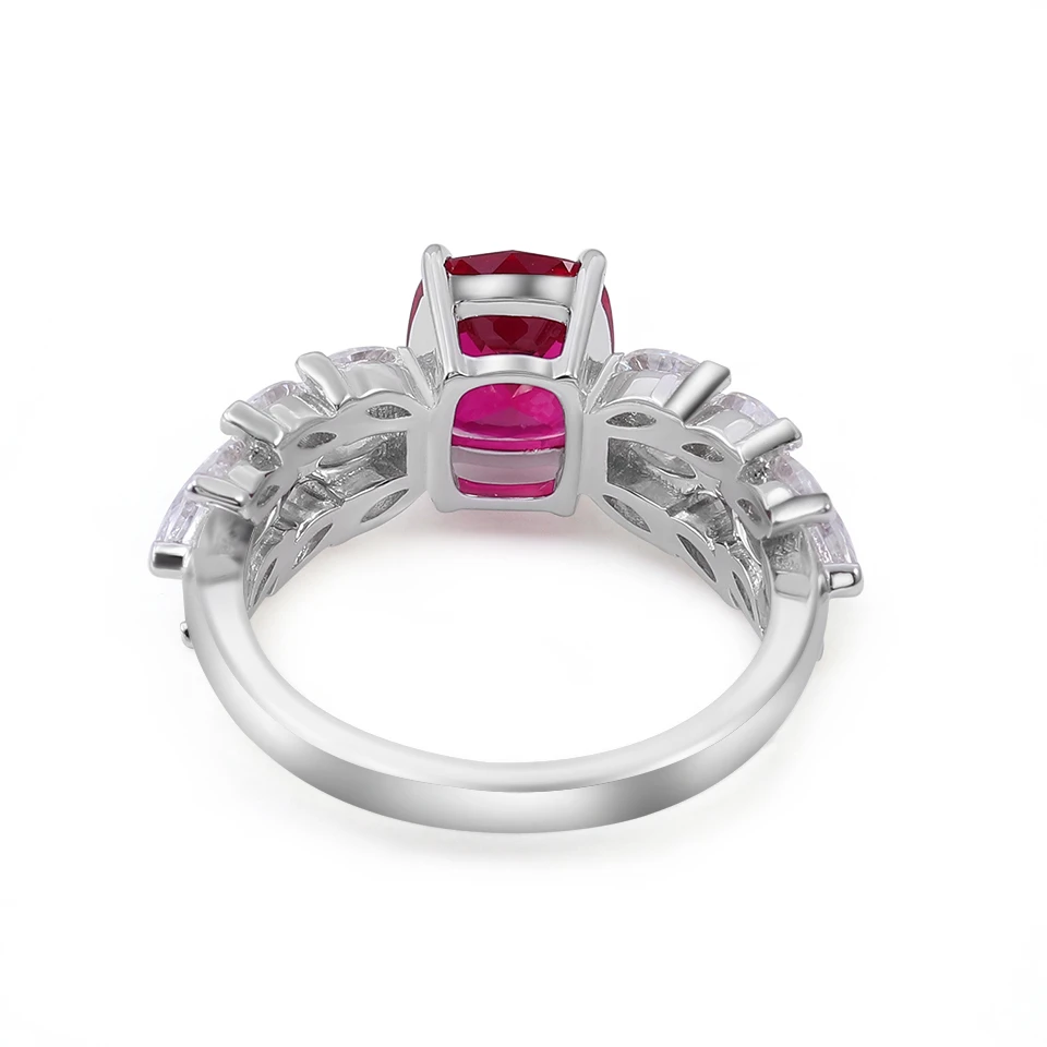 Striking White Gold Ruby Cushion Cut Lab Gemstone Ring