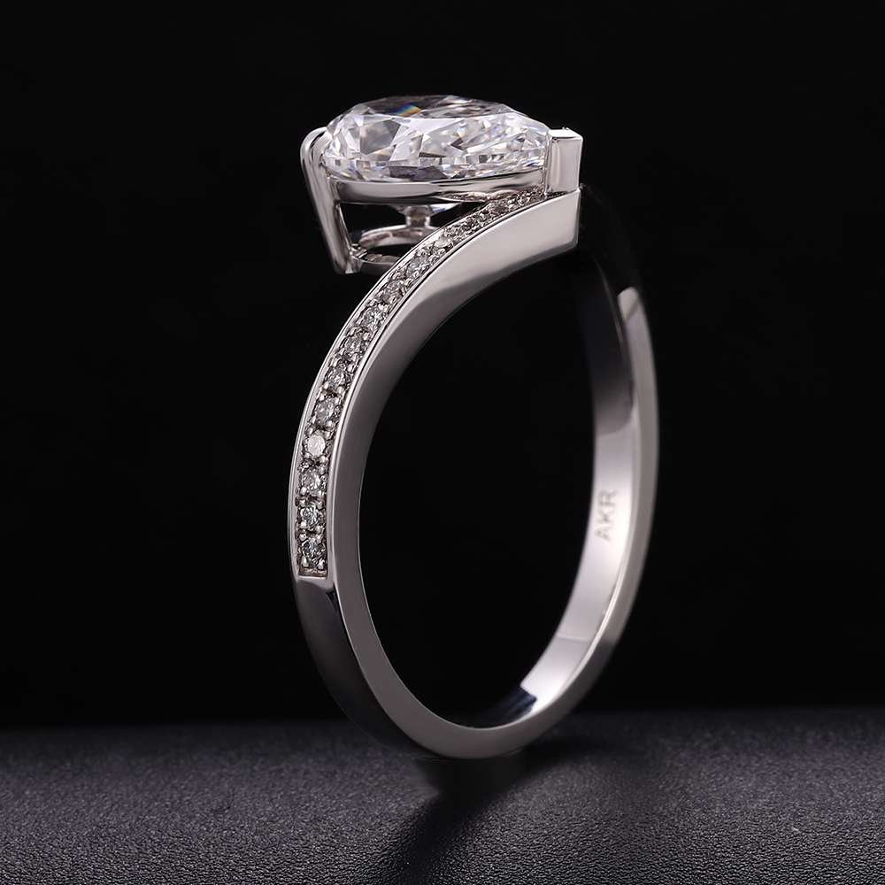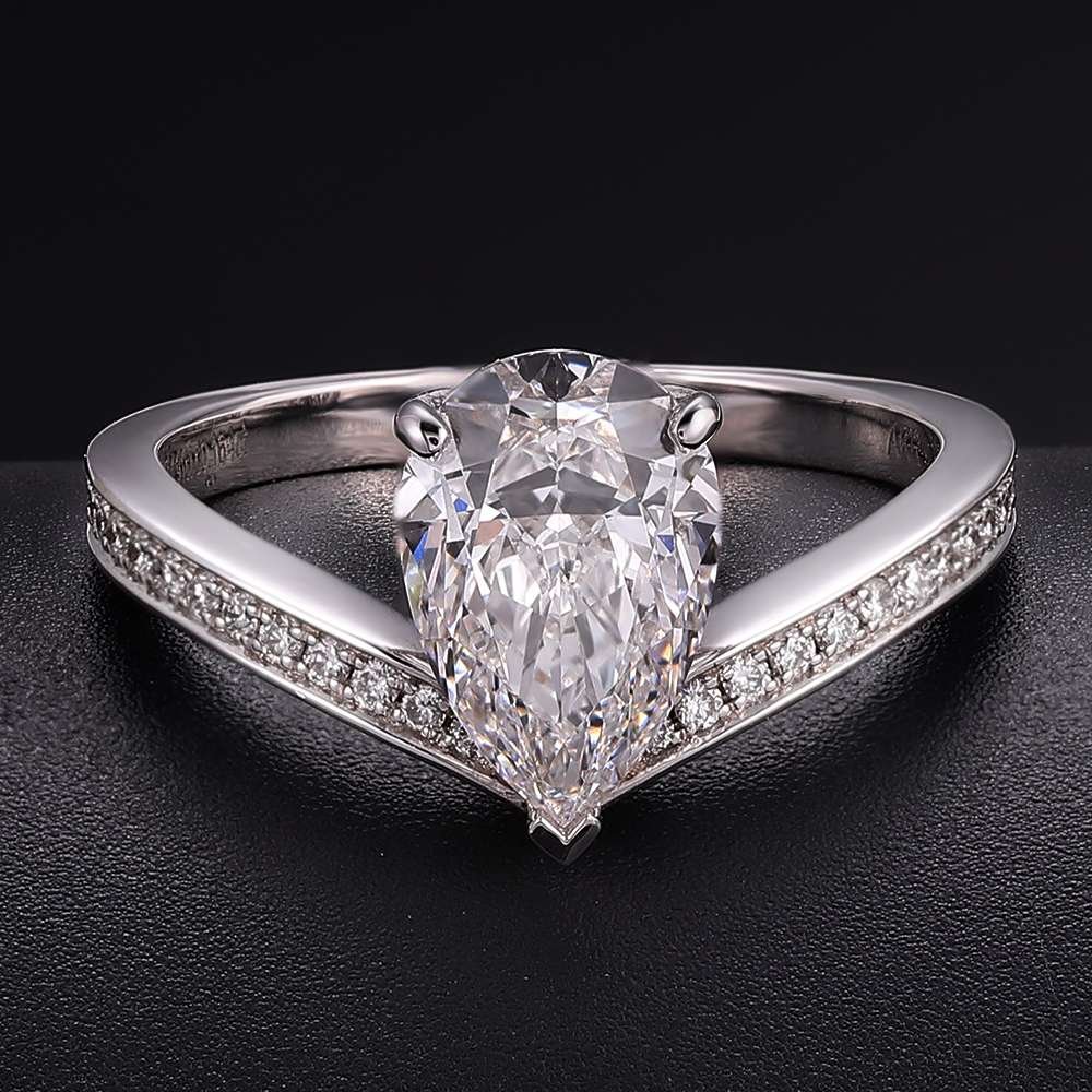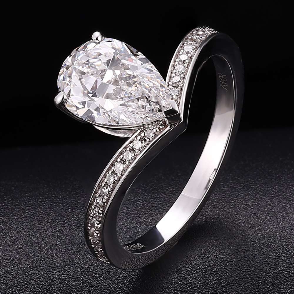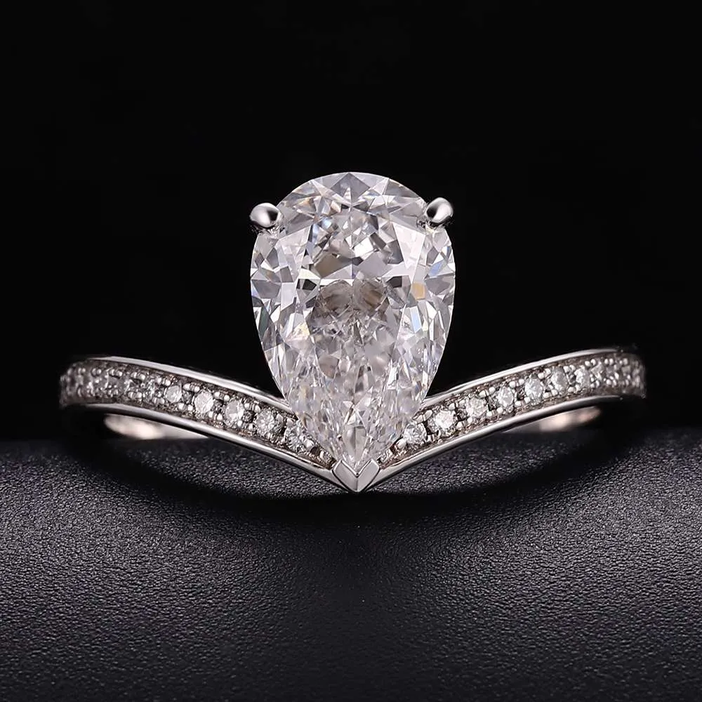 Stunning Curved Band 2.3CT Pear Cut Lab Diamond Pave Ring