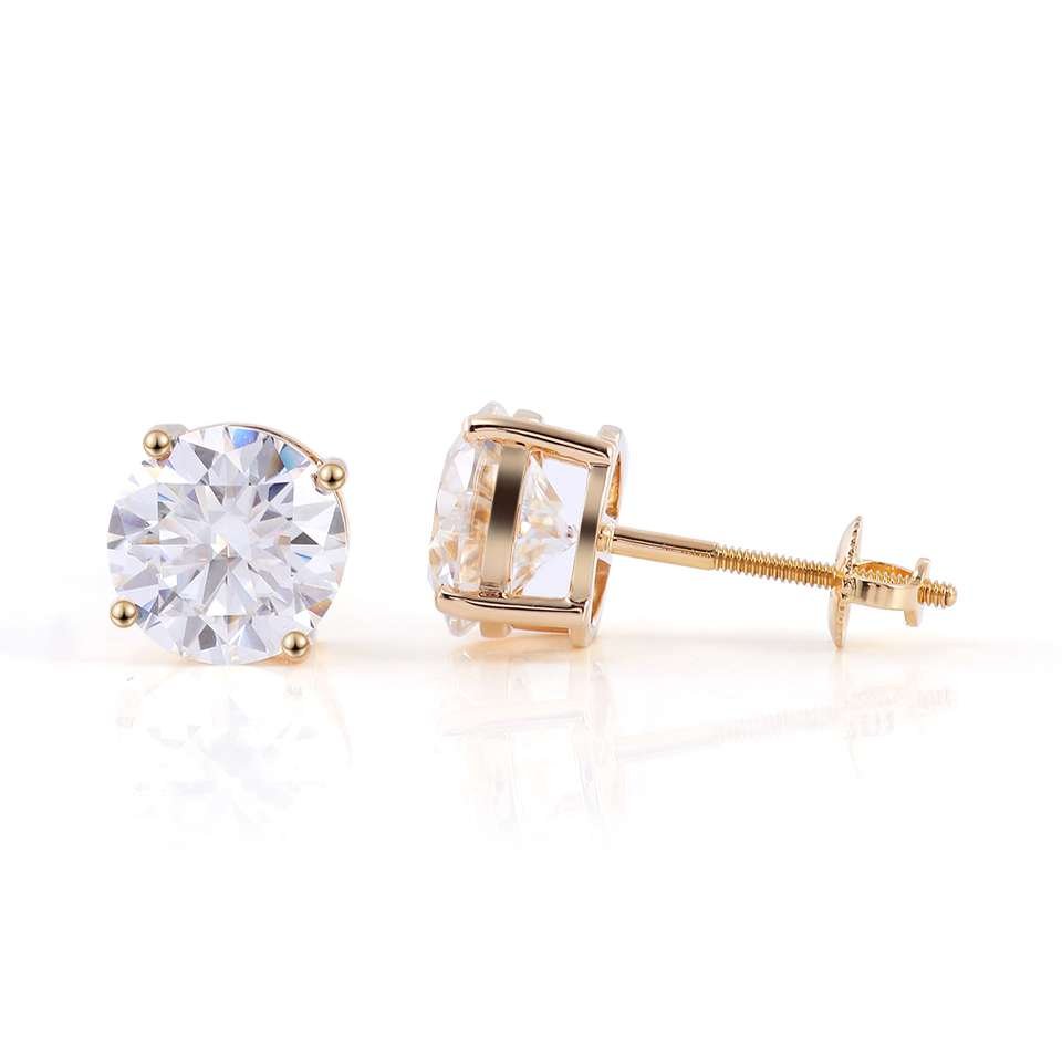 These Round Cut Stud Earrings showcase brilliant VVS clarity moissanite stones with a classic round cut. Set in sumptuous yellow gold, they exude a perfect blend of timeless elegance and contemporary allure. The superior craftsmanship and the dazzling sparkle of the moissanite make these earrings an ideal pick for any occasion, be it a laid back day out or a momentous event.