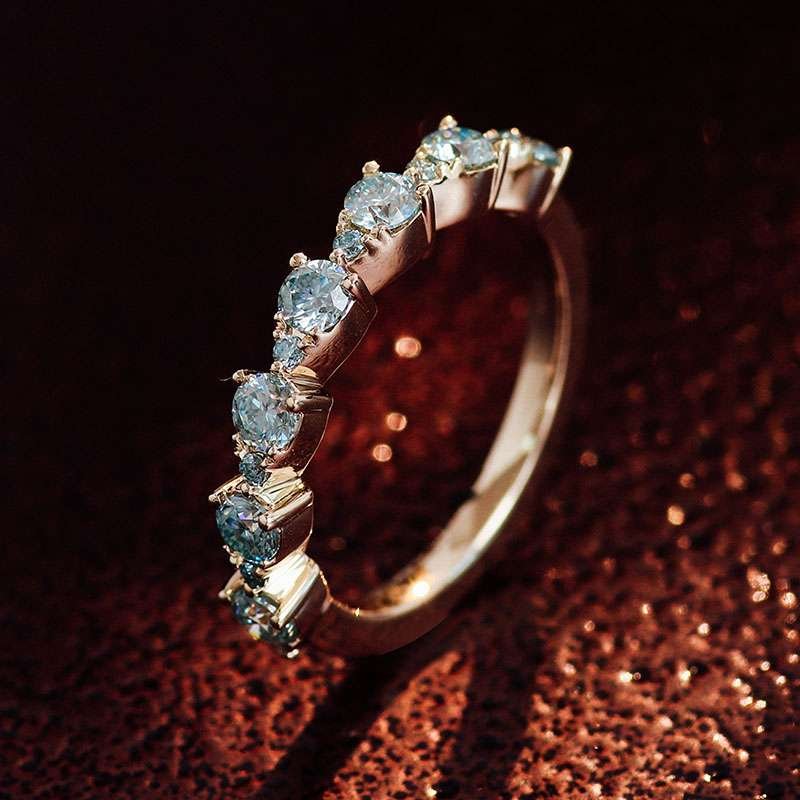 Stunning Round Cut Moissanite Yellow Gold Half Eternity Ring