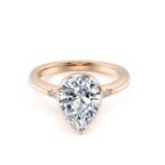 This exquisite yellow gold Solitaire Ring showcases a magnificent moissanite with VVS clarity, expertly cut in a pear shape. The pear cut moissanite, known for its brilliant sparkle, is the centerpiece of this elegant and modern style ring. Small accent diamonds on the band add extra charm and brilliance. Perfect for engagements or as a luxurious statement piece, this ring combines timeless beauty with contemporary design.