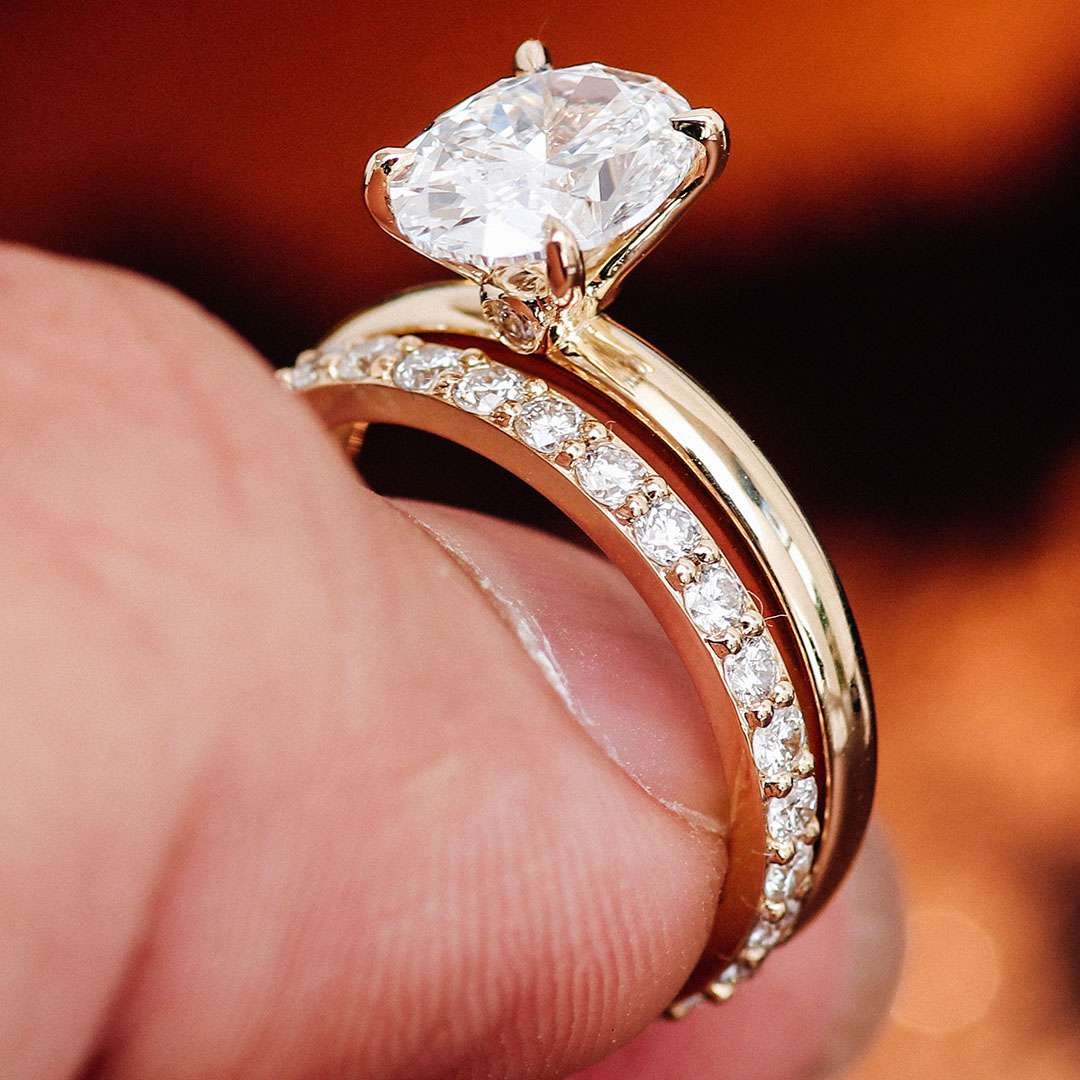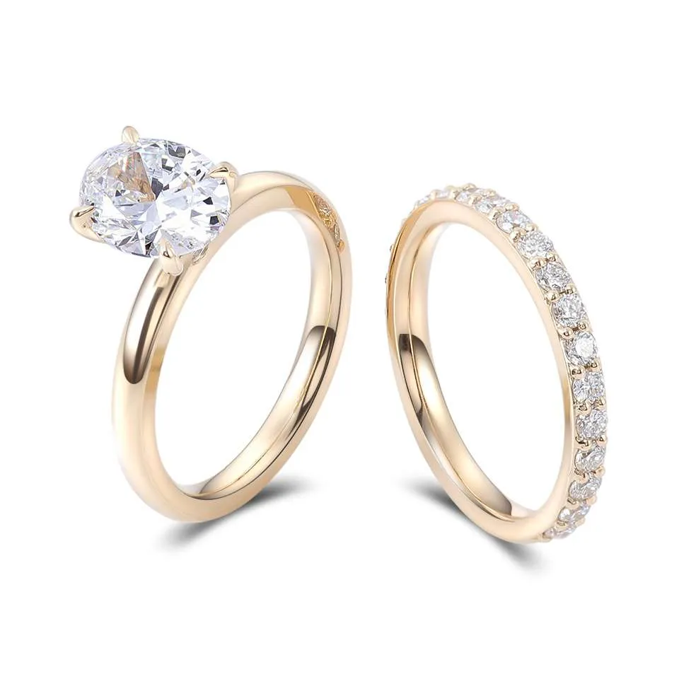 Stunning Yellow Gold Oval Cut Moissanite Ring Set