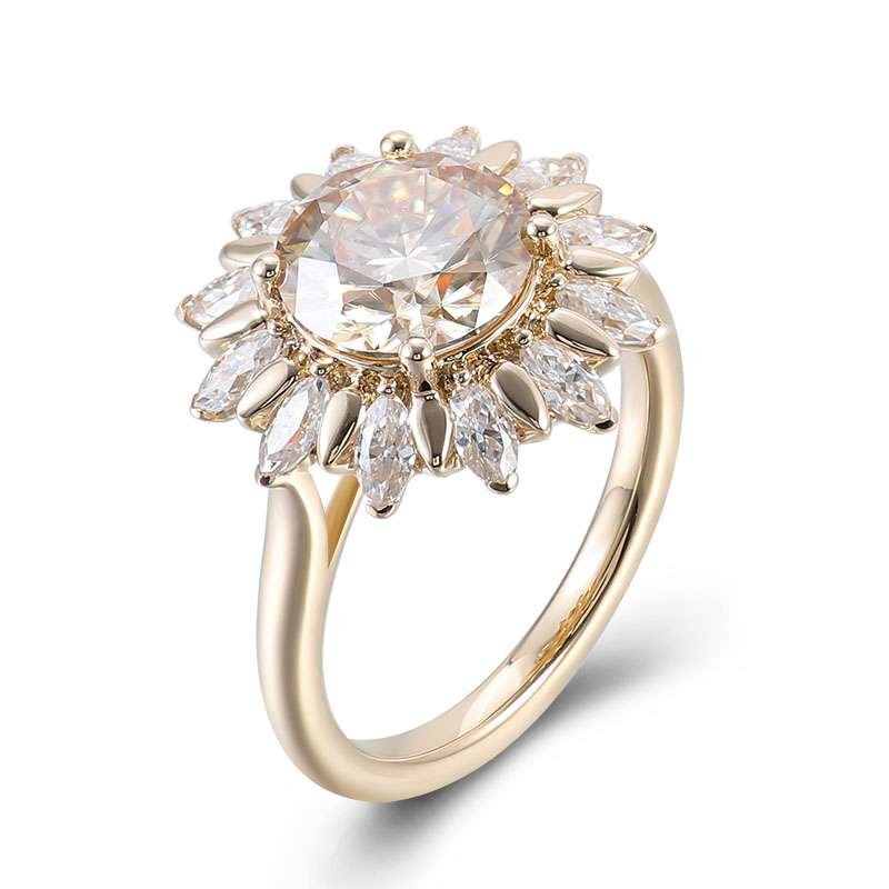 Sunflower Inspired:Yellow Gold 3CT Round Cut Moissanite Halo Ring