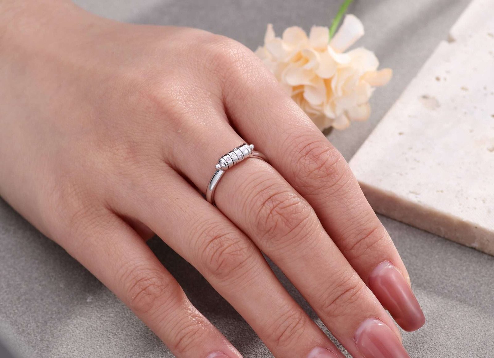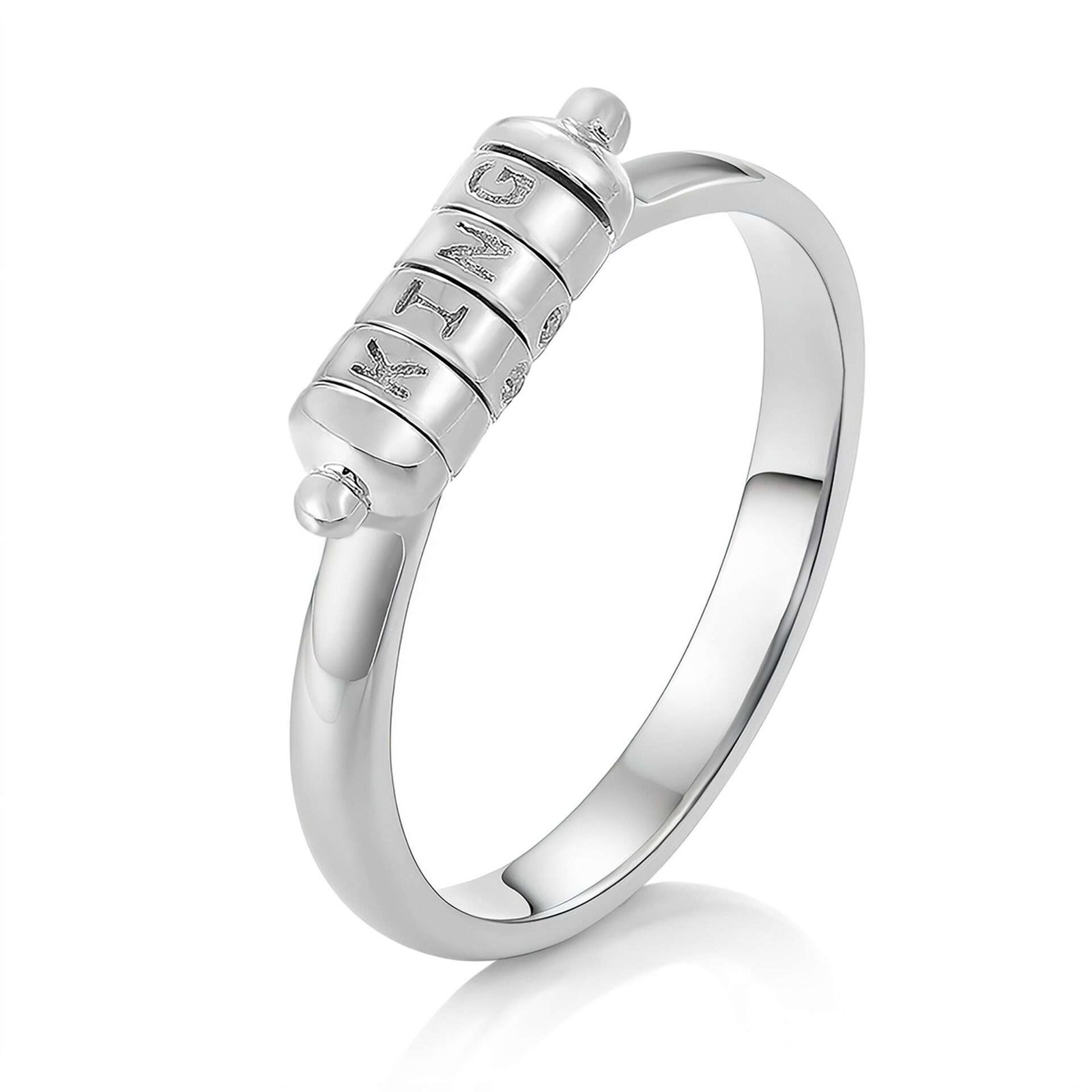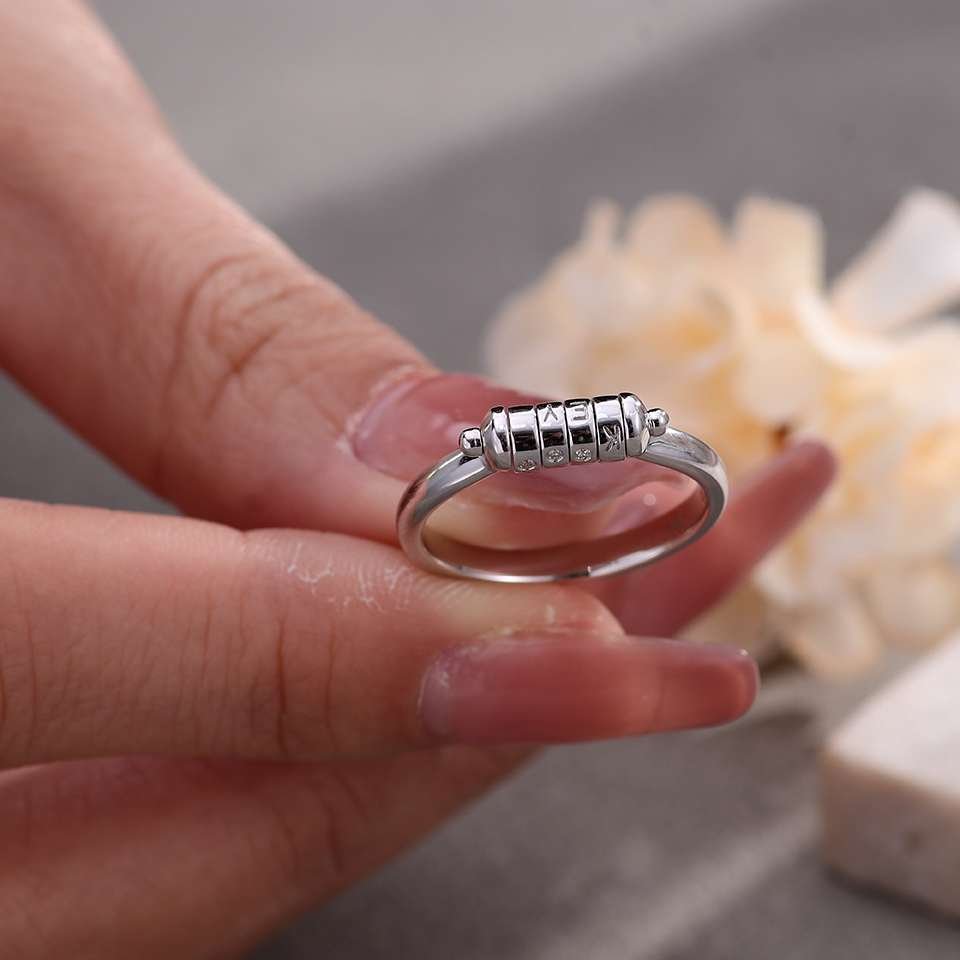 Unique Horizontal Axis Rotatable Name Wedding Ring