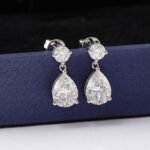 These vintage platinum Drop Earrings, a spiral design with a pear moissanite dangle over the ear, are popular with many women and are a popular fashion right now.