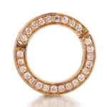 The Universal Diamond Clasp redefines versatility as a functional jewelry clasp crafted in 18K yellow gold. Its circular form is fully encircled by a continuous pavé of round-cut lab diamonds, meticulously set to radiate ice-white brilliance against the warm gold base. The polished gold interior contrasts with the diamond-covered exterior.This piece merges utilitarian function with high jewelry artistry — ideal for transforming any piece into a statement of ethical luxury.