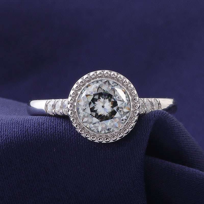 Home » Jewelry » Vintage 7.2mm Round Jubilee Cut Moissanite Halo Engagement Ring
