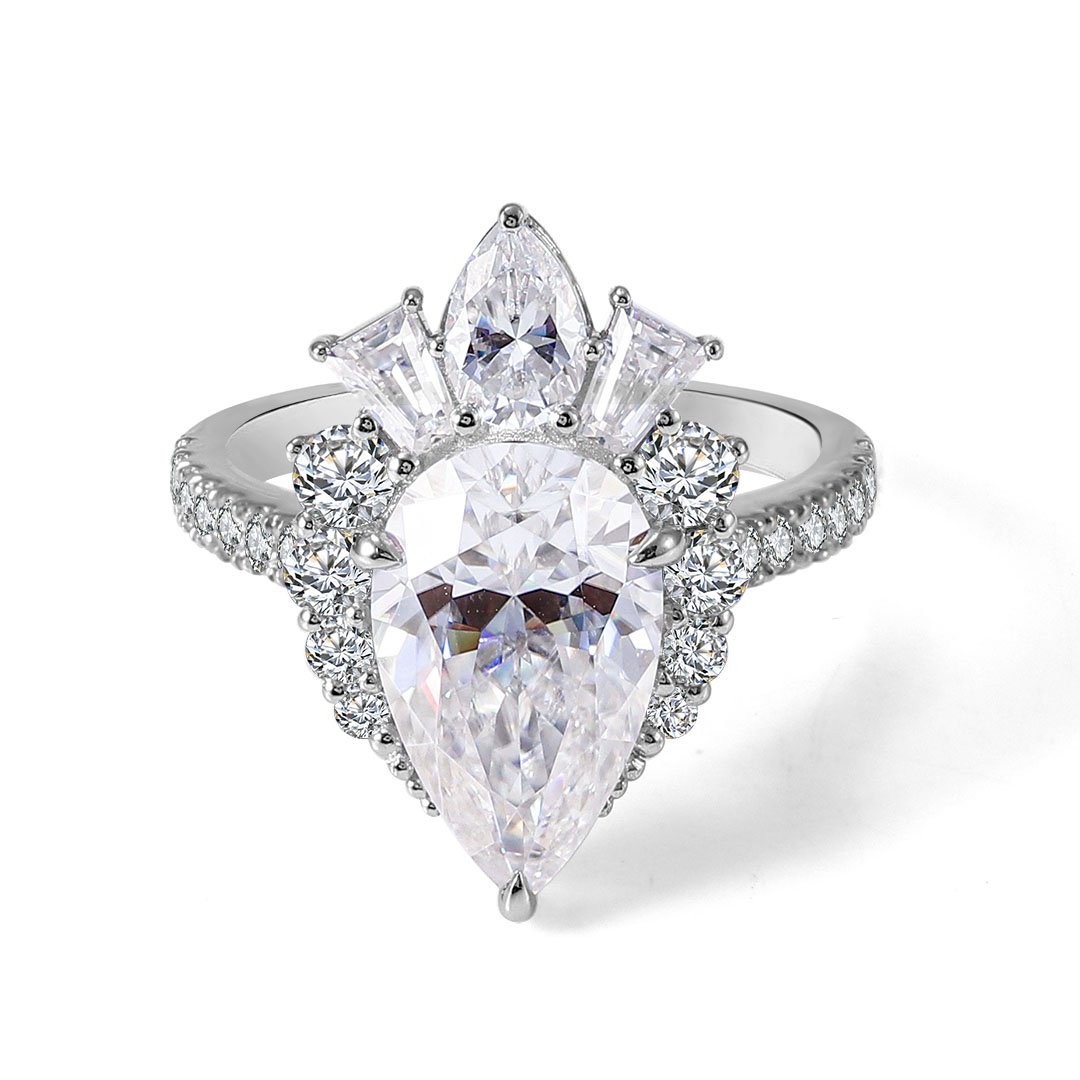 Vintage Crown Design Pear Shaped Moissanite Ring