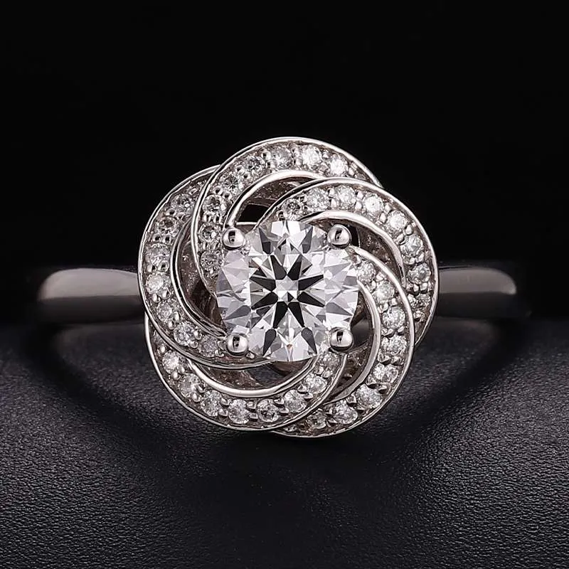 White Gold 0.5CT Round Cut Swirling Pattern Lab Diamond Ring