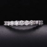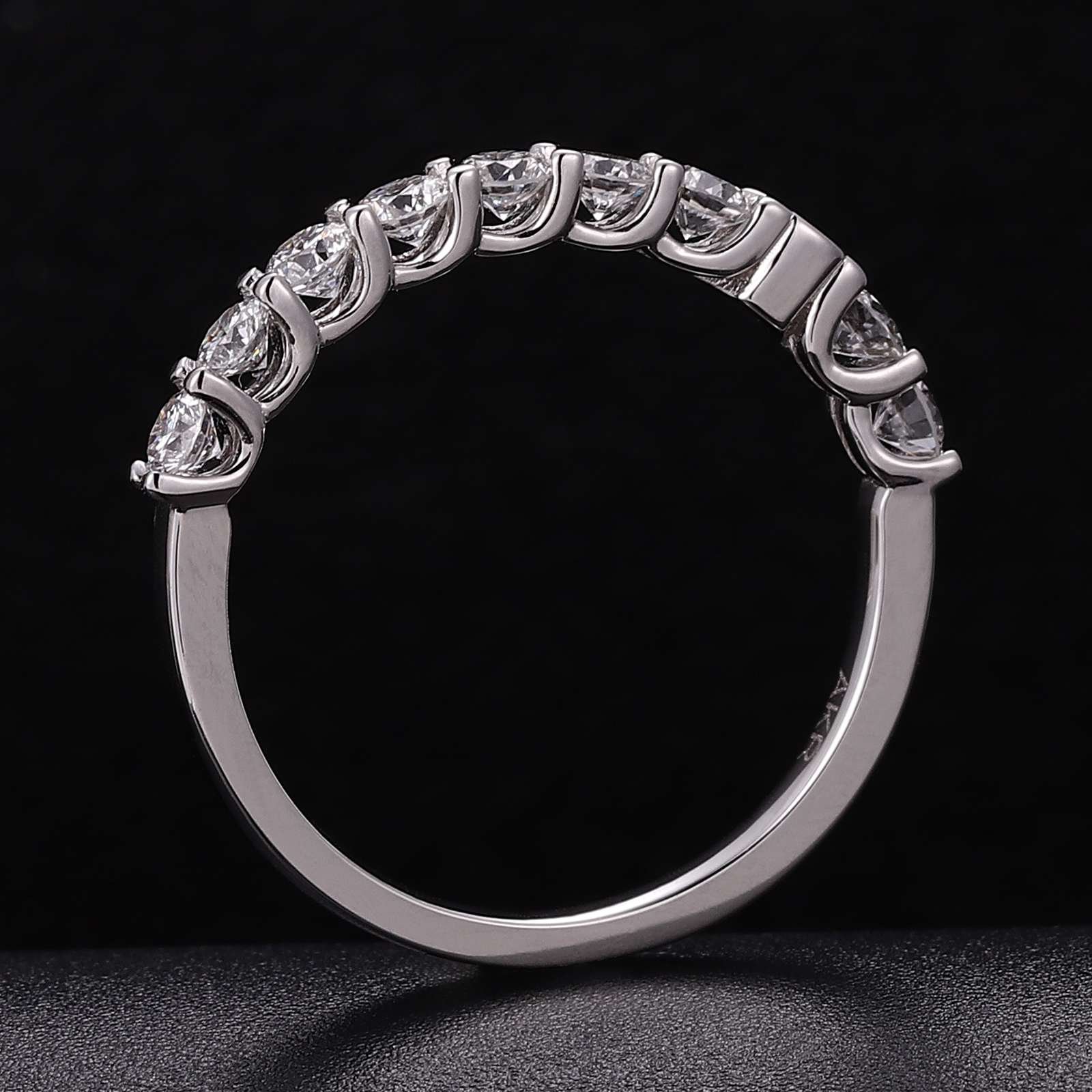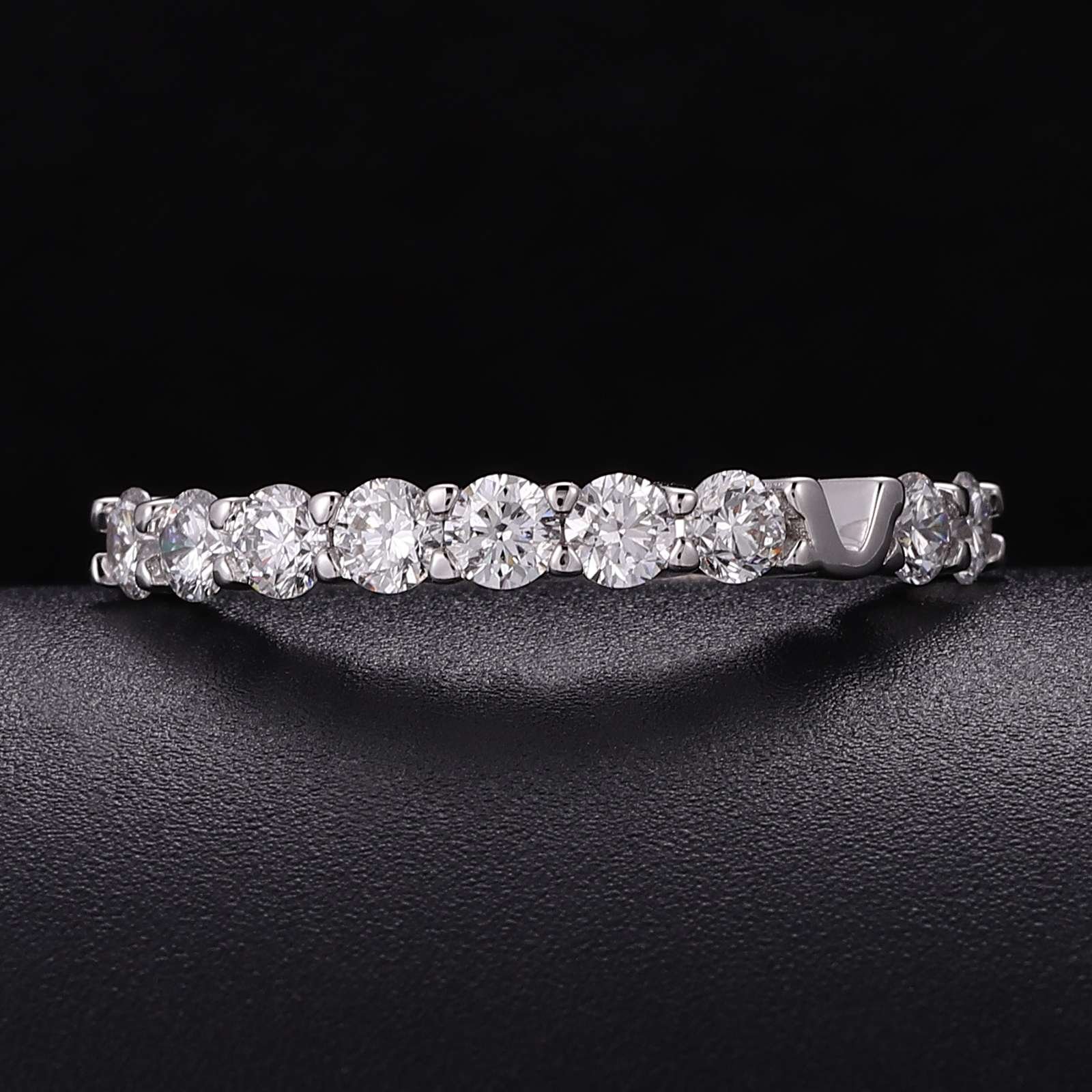 This white gold band ring is a paragon of glamour and sophistication. It features a row of stunning round cut lab diamonds, each meticulously set to maximize their collective sparkle. The diamonds, with their perfect round cut, catch and reflect light from every angle, creating a continuous stream of dazzling brilliance. The sleek white gold band provides a luxurious backdrop, enhancing the overall allure of the ring. Ideal for those who desire a piece of jewelry that combines modern style with timeless elegance, this ring is perfect for both everyday wear and special occasions.