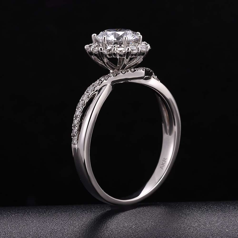 White Gold Crossed Shoulders 1CT Round Cut Lab Diamond Ring