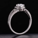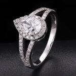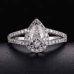 Behold this breathtaking pear cut lab diamond ring, masterfully crafted in white gold. The centerpiece is a magnificent lab grown diamond with a pear cut, which combines the allure of a pointed end and a rounded top, creating a unique and elegant silhouette. Surrounded by a halo of smaller diamonds that enhance its sparkle, and with the band adorned with additional diamonds, this ring exudes luxury and sophistication. Whether for a special occasion or as a cherished heirloom, it’s a piece that will be admired for its beauty and craftsmanship.