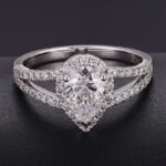 White Gold Forked Shoulder Ring 1CT Pear Cut Lab Diamond Ring