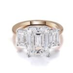 Yellow and White Gold Three-Stone Emerald Cut Diamond Ring