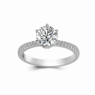classic 6 prong pave band 6mm round solitaire engagement ring