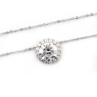 2ct Classic Solitaire with Halo Moissanite Pendant Necklace